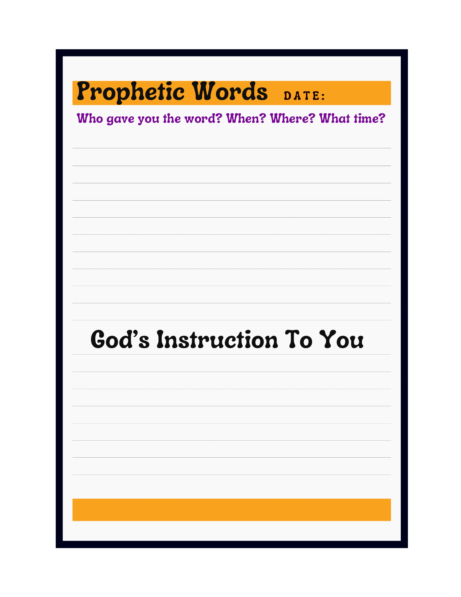 • Sections to document prophetic words, instructions, and spiritual insight